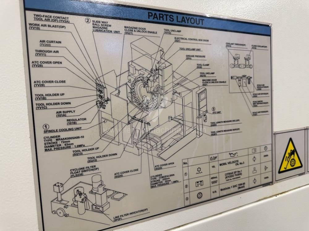 The machine is in very good technical condition and can be tested. Accessories: chip conveyor, 4th axis KITAGAWA NC rotary table (simultaneous 4th axis), preparation for Renishaw probe, complete documentation. The machine was operated in a single shift.