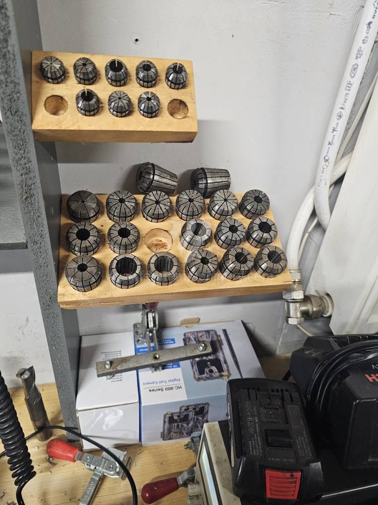 The machine comes with clamps, collets, vices, universals, and a 3D probe.