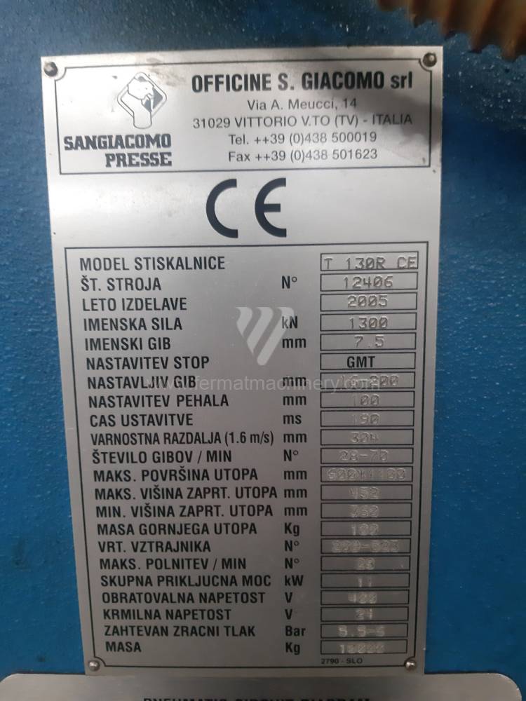 | Force de formage nominale de la presse | 130 t |