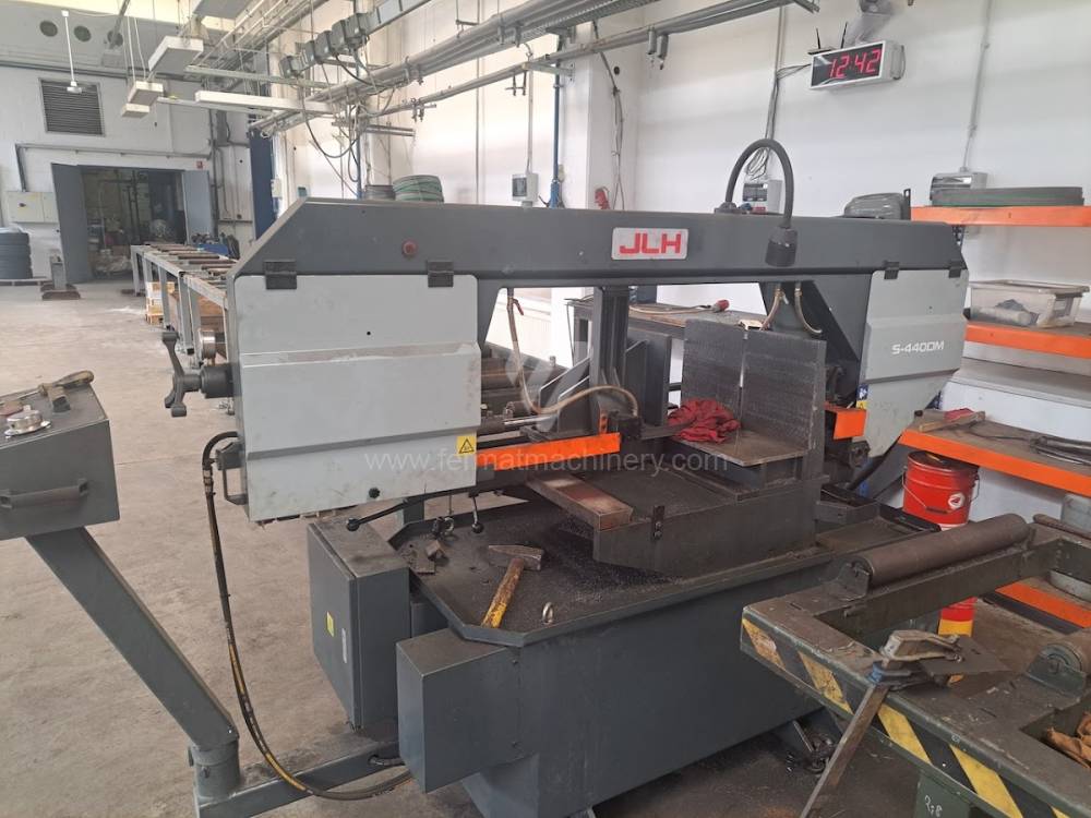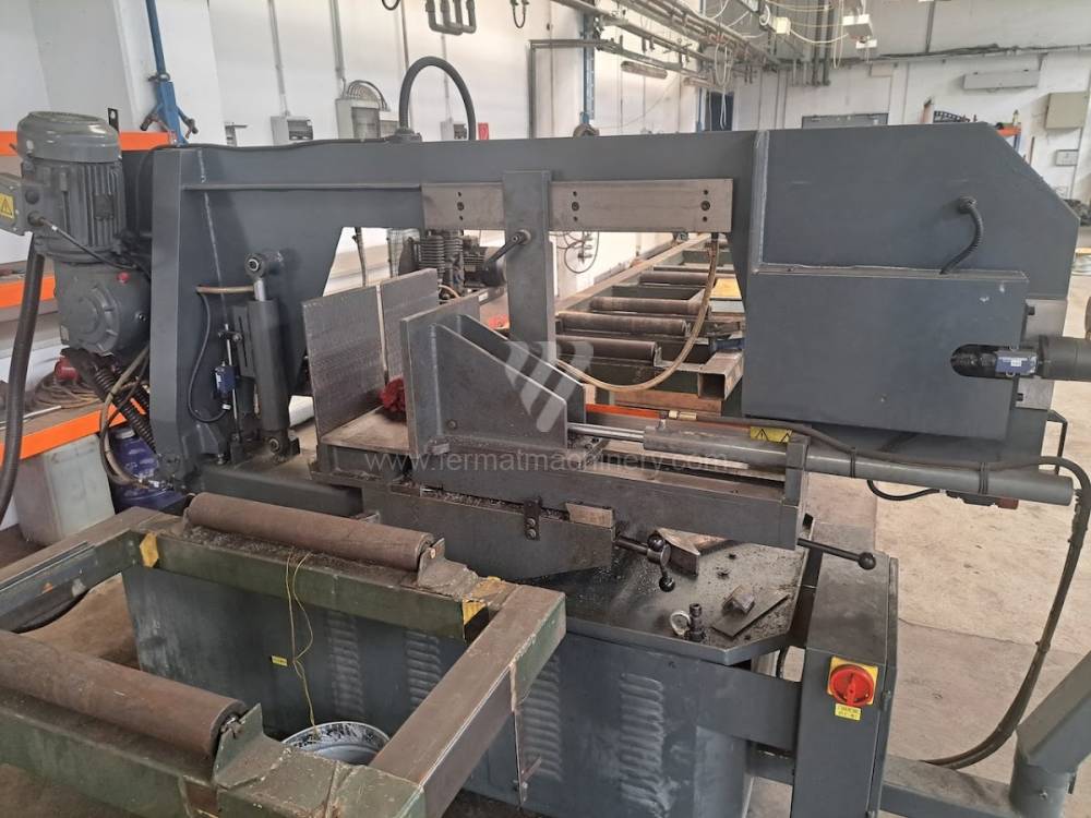 The machine is in very good technical condition, connected and can be tested. Angle cutting -45 ... +60 degrees. Hydraulic lowering tilting frame semi-automatic sawing machine. Band size: 5200x34x1.1 mm. Speed 20-90 m/min.