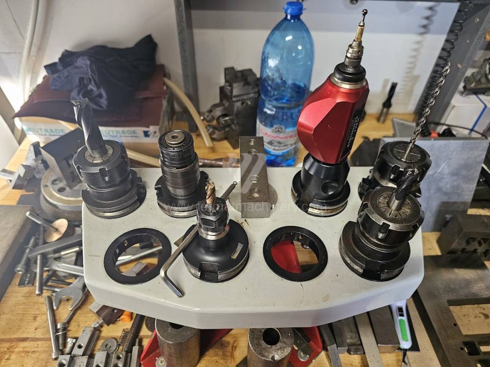The machine comes with clamps, collets, vices, universals, and a 3D probe.